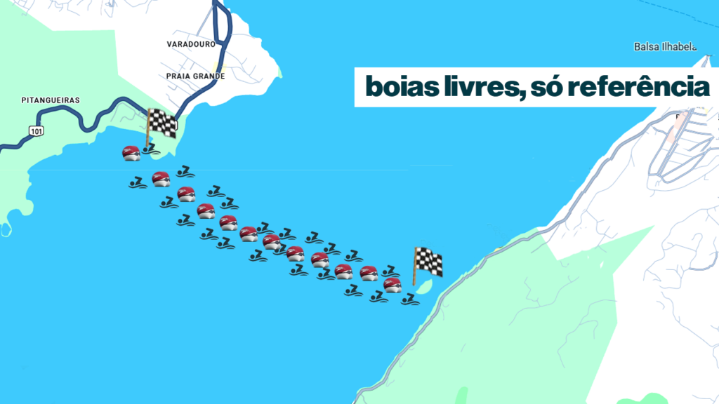 A Travessia de São Sebastião tem como percurso atravessar a nado o icônico canal que separa dois municípios. O atleta deverá partir do lado oposto do canal, atravessa-lo, até alcançar a margem na cidade de São Sebastião em um trecho com aproximadamente 2.500 metros.